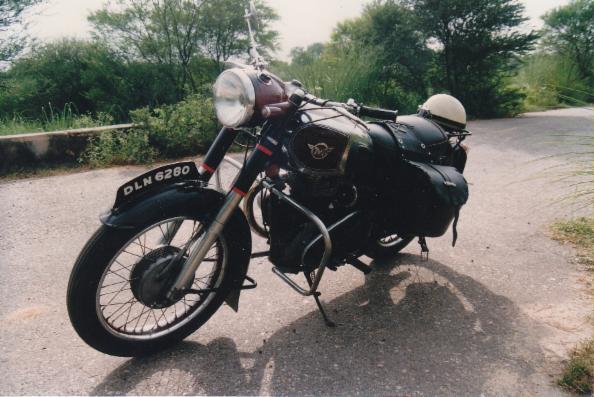 Diese Bilder entstanden 1996 in Indien, als ich die Maschine dort in recht gut erhaltenem Originalzustand gekauft habe und damit auch einige Touren ins Umland von Delhi unternommen habe.