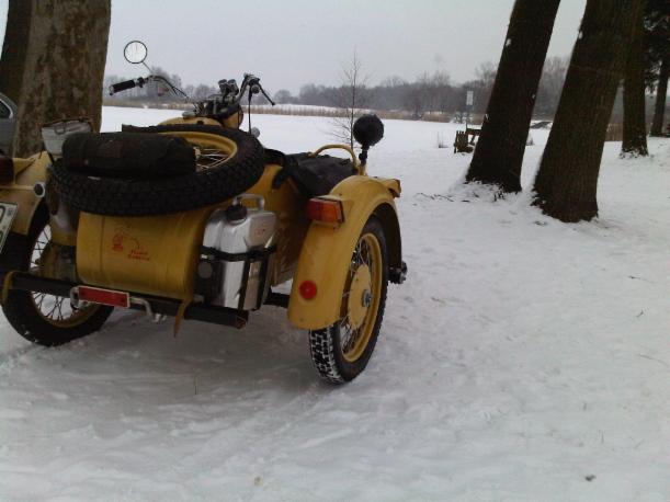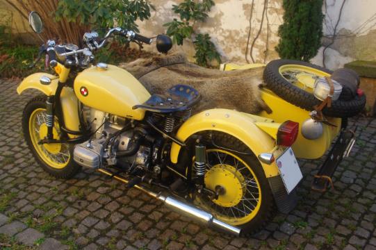 Diese Maschine wurde mal als sogenanntes Inlandsmodell in der Ukraine produziert, und hat dann kurz danach werksneu den Weg auf der Straße bis nach Ostdeuschland geschafft(!), wo sie gegen einen alten Lada verhökert wurde, welchen in dieser Zeit niemand mehr hier fahren wollte. Leider war die qualitative Halbwertszeit dieses eigentlich neuen Motorrades nicht allzu hoch, und schon nach kurzer Zeit begann der systematische Zerfall. Dieses führte recht bald zu einer gezwungenermaßen kompletten Überarbeitung der Maschine, die auch jetzt - nach mittlerweile fast 20 Jahren - noch kein Ende gefunden zu haben scheint. Ich habe aber bei allem Aufwand nicht den Ehrgeiz, ne BMW daraus zu machen, soll schon originale Technik bleiben, nur eben haltbarer.... ein etwas schwieriges Unterfangen.